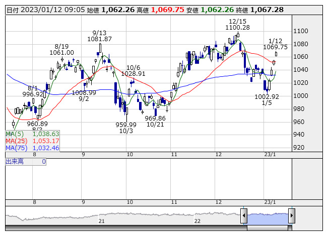非鉄金属 <日足> 「株探」多機能チャートより●東証33業種 値上がり: 15 業種 値下がり: 18 業種