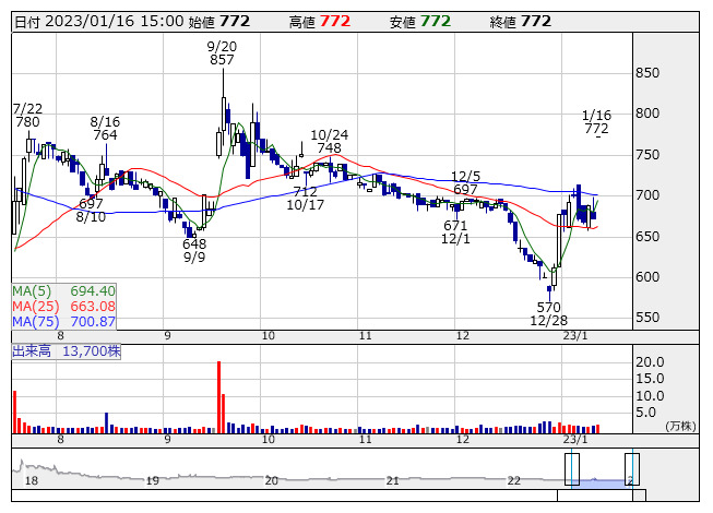 幸和製 <日足> 「株探」多機能チャートより個別では幸和製作所<7807>がストップ高。石光商事<2750>、クリエイト<3024>、買取王国<3181>、コーセーアールイー<3246>、東京日産コンピュータシステム<3316>など14銘柄は昨年来高値を更新。ダントーホールディングス<5337>、ユーピーアール<7065>、エヌジェイホールディングス<9421>、スーパーバリュー<3094>、ケイブ<3760>は値上がり率上位に買われた。