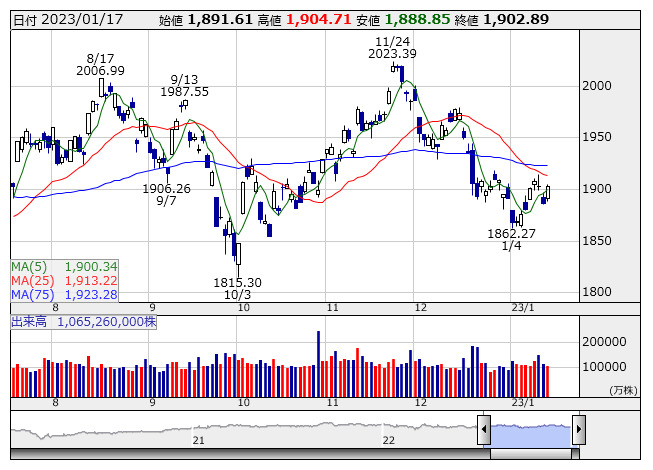 1900.60ポイント 5日移動平均