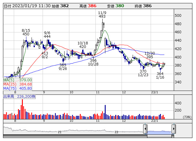 三井E&S <日足> 「株探」多機能チャートより■財務省 : 1月19日受付