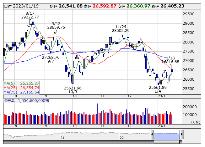 27055.00円 一目均衡表・先行スパン2(雲下限)