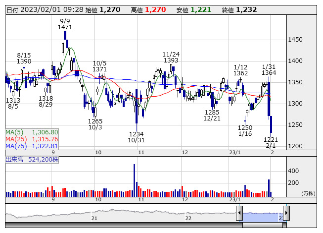 ゼオン <日足> 「株探」多機能チャートより―決算で売られた銘柄! 下落率ランキング―