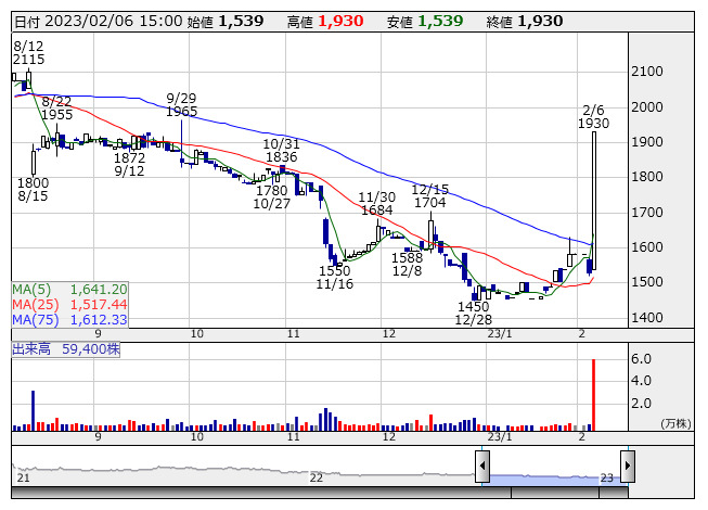 【材料】本日のランキング【寄付からの値上がり率】 (2月6日)