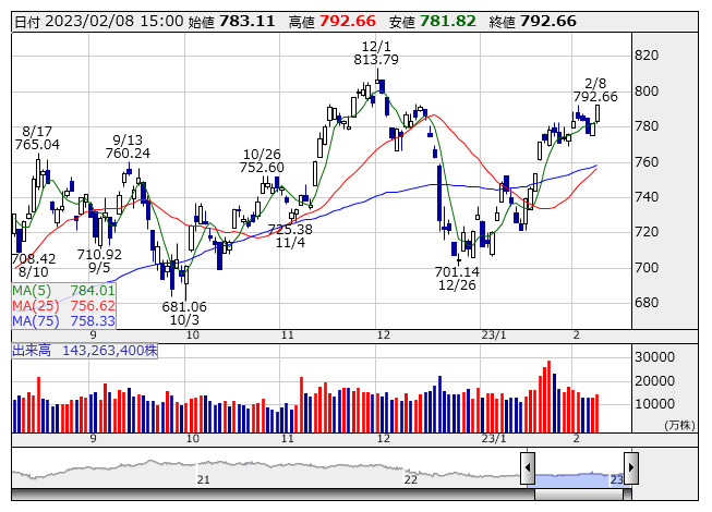 2023年02月08日15時17分 【市況】マザーズ先物:8日清算値=7ポイント高、785ポイント マザーズ指数 <日足> 「株探」多機能チャートより 8日15時15分、東証マザーズ指数先物期近2023年3月限は前日清算値比7ポイント高の785ポイントで取引を終えた。出来高は3525枚だった。この日の東証マザーズ指数の現物終値792.66ポイントに対しては7.66ポイント安。 株探ニュース