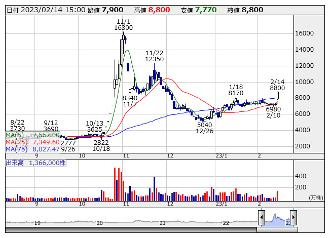 13日に決算を発表。「今期営業は赤字縮小へ」が好感された。