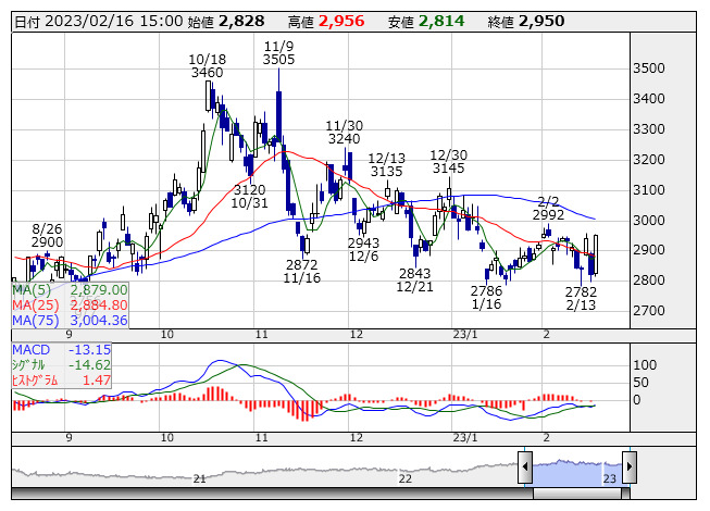【特集】MACD【買いシグナル】低PBR 15社選出 <テクニカル特集> 2月16日版