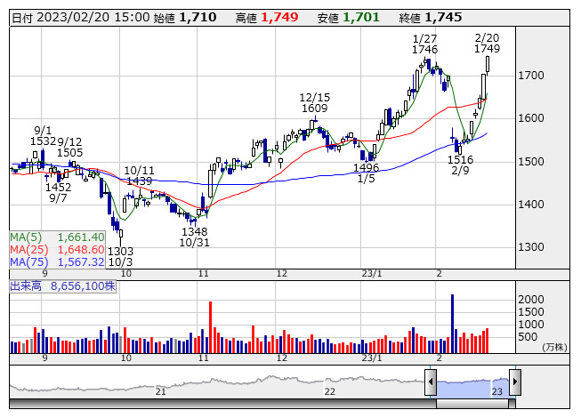 <5411> JFEホールディングス 1745 +40 ( +2.4%) 1661.4 1648.6