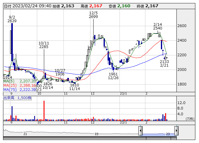 2023/02/22 16.75% → 13.33% 125,000 2023/02/24 10:02