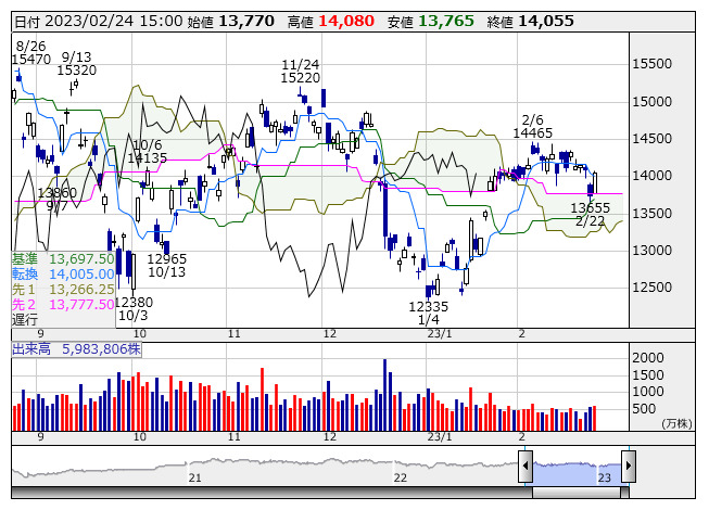3)株価が均衡表の「雲(抵抗帯)」を下回る