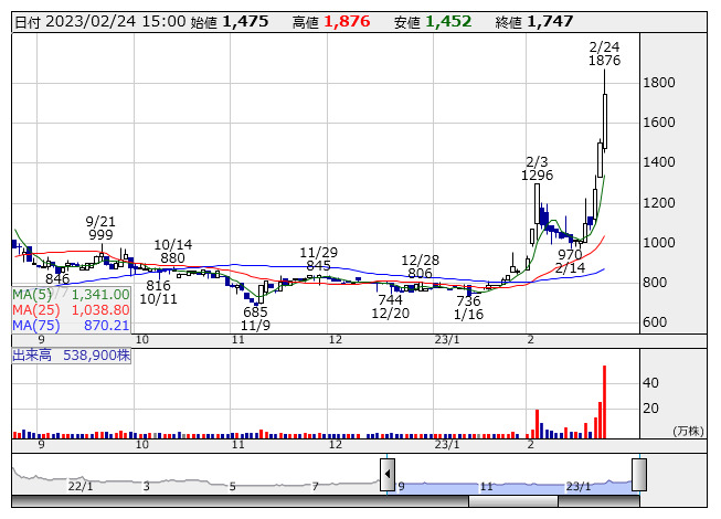 ラストワンM <日足> 「株探」多機能チャートより■財務省 : 2月24日受付