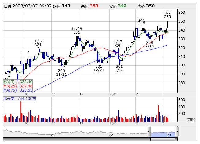 6日に発表した「2月既存店売上高は4.4%増」が買い材料。