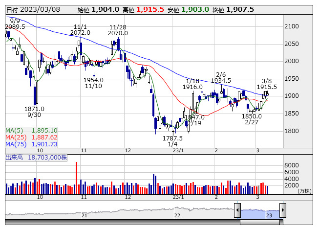 <2768> 双日 22310 ( 77) 2,879 +74 ( +2.6%)