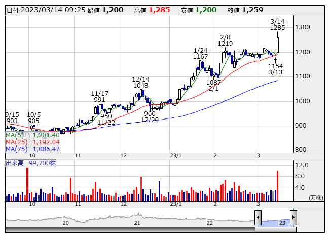 2023年03月14日09時24分 【材料】コプロHDが大幅反発、期末配当予想を増額修正 コプロHD <日足> 「株探」多機能チャートより コプロ・ホールディングス<7059>が大幅反発している。13日の取引終了後、23年3月期の期末配当予想を30円から40円へ引き上げたことが好感されている。年間配当は50円となり、前期実績に対しては10円の増配になる予定だ。 出所:MINKABU PRESS