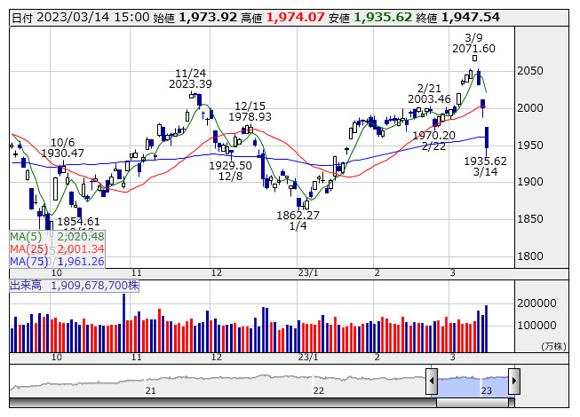 【市況】TOPIX先物テクニカルポイント(14日大引け)