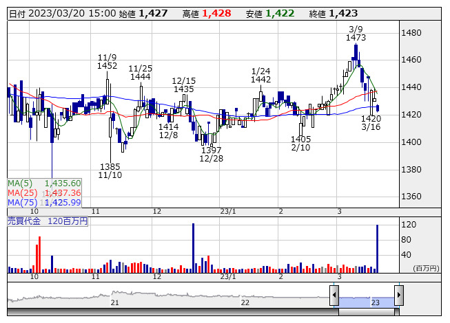 31. <8746> 第一商品 140 ( +6.9%) 433 ( 3.9倍)