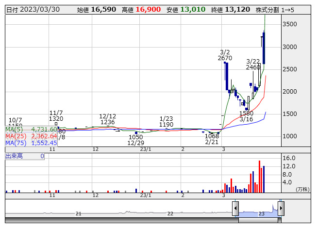 Arent <5254> [東証G] 前日もストップ高。2023年のIPO関連