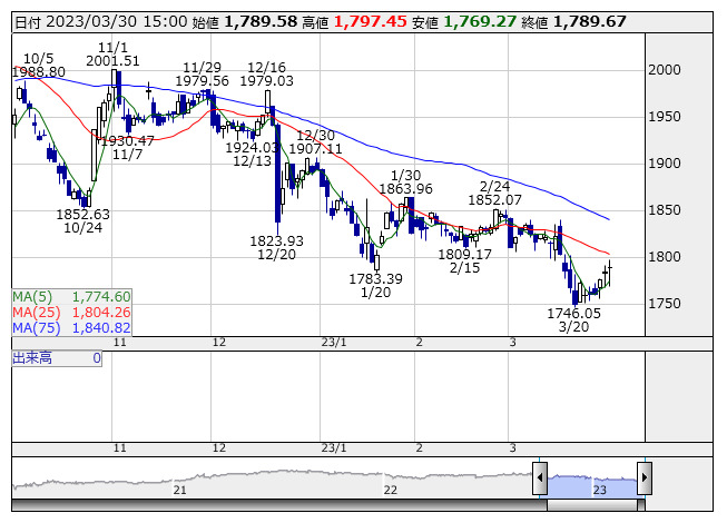2023年03月30日15時17分 【市況】東証REIT指数先物:30日清算値=8.5ポイント高、1778.5ポイント REIT指数 <日足> 「株探」多機能チャートより 30日15時15分、東証REIT指数先物期近2023年6月限は前日清算値比8.5ポイント高の1778.5ポイントで取引を終えた。出来高は533枚だった。この日の東証REIT指数の現物終値1789.67ポイントに対しては11.17ポイント安。 株探ニュース