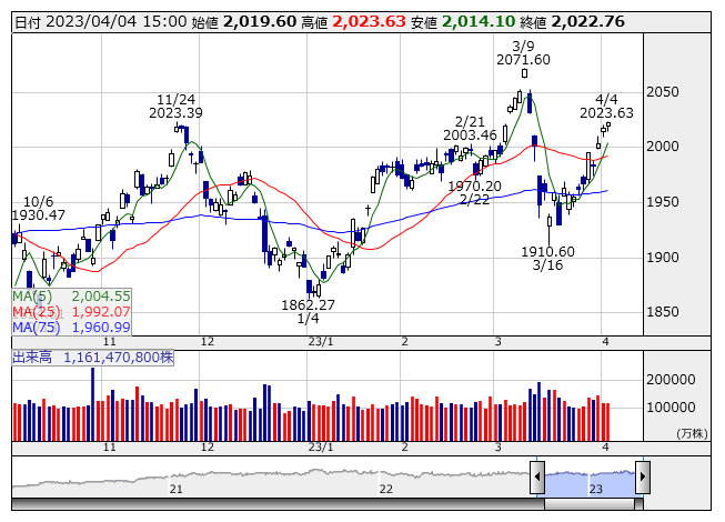 2023年04月04日15時17分 【市況】TOPIX先物:4日清算値=1.5ポイント安、2020ポイント TOPIX <日足> 「株探」多機能チャートより 4日15時15分、TOPIX先物期近2023年6月限は前日清算値比1.5ポイント安の2020ポイントで取引を終えた。出来高は6万1509枚だった。この日のTOPIXの現物終値2022.76ポイントに対しては2.76ポイント安。 株探ニュース
