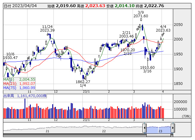 2023年04月05日08時46分 【市況】TOPIX先物:5日寄り付き=12.5ポイント安、2007.5ポイント TOPIX <日足> 「株探」多機能チャートより 5日8時45分、TOPIX先物期近2023年6月限は前日清算値比12.5ポイント安の2007.5ポイントで寄り付いた。前日のTOPIXの現物終値2022.76ポイントに対しては15.26ポイント安。夜間取引の終値2006ポイントに対しては1.5ポイント高となっている。 株探ニュース