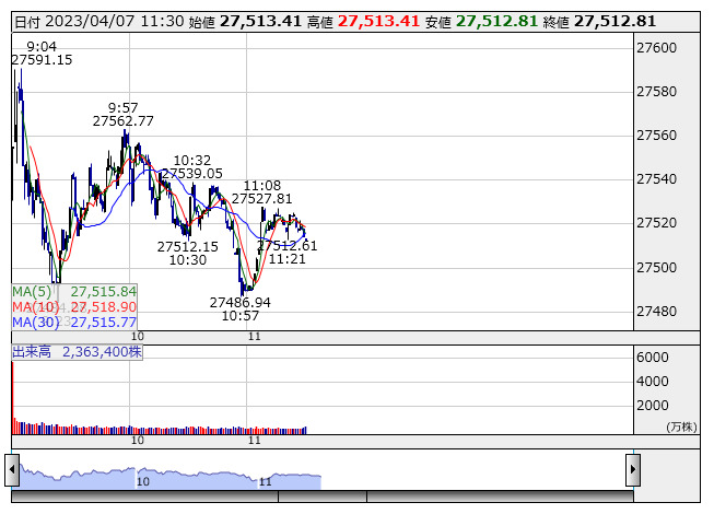 【市況】日経平均7日前引け=3日ぶり反発、40円高の2万7512円