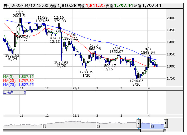 2023年04月12日15時17分 【市況】東証REIT指数先物:12日清算値=9.5ポイント安、1792.5ポイント REIT指数 <日足> 「株探」多機能チャートより 12日15時15分、東証REIT指数先物期近2023年6月限は前日清算値比9.5ポイント安の1792.5ポイントで取引を終えた。出来高は177枚だった。この日の東証REIT指数の現物終値1797.44ポイントに対しては4.94ポイント安。 株探ニュース