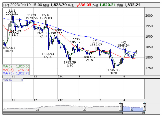 2023年04月19日15時17分 【市況】東証REIT指数先物:19日清算値=11ポイント高、1833ポイント REIT指数 <日足> 「株探」多機能チャートより 19日15時15分、東証REIT指数先物期近2023年6月限は前日清算値比11ポイント高の1833ポイントで取引を終えた。出来高は82枚だった。この日の東証REIT指数の現物終値1835.24ポイントに対しては2.24ポイント安。 株探ニュース