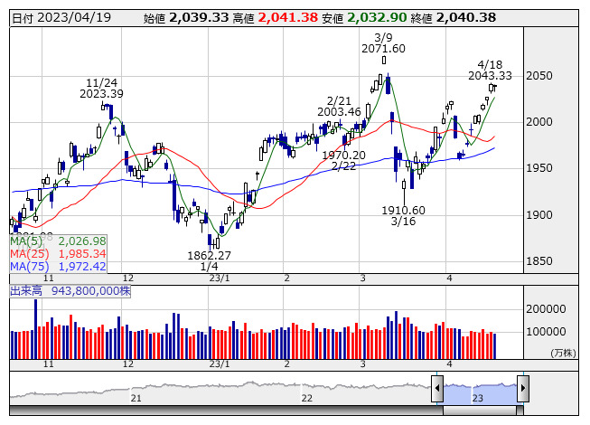 2031.70ポイント 5日移動平均