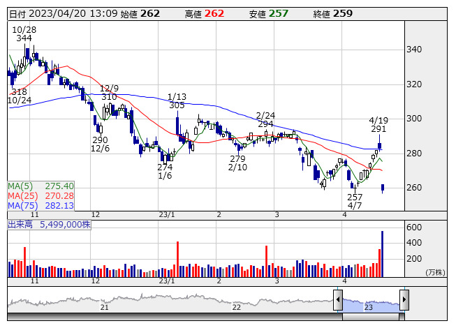 2023年04月20日13時10分 【材料】いちご---急落、今期の大幅減益見通しをネガティブ視 いちご <日足> 「株探」多機能チャートより いちご<2337>は急落。前日に23年2月期の決算を発表。営業利益は125億円で前期比24.7%増となり、ほぼ市場想定線での着地とみられるが、年間配当金は7円から8円に引き上げられている。一方、24年2月期は95億円で同24.0%減の見通しとしており、前期比横ばい水準であったコンセンサスを下回っていることがネガティブ視される形に。また、期待感のあった自社株買いの発表がなかったことも売り材料とされているようだ。 《TY》 提供:フィスコ