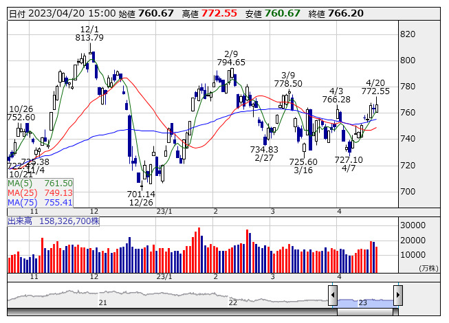 2023年04月20日15時17分 【市況】マザーズ先物:20日清算値=1ポイント高、756ポイント マザーズ指数 <日足> 「株探」多機能チャートより 20日15時15分、東証マザーズ指数先物期近2023年6月限は前日清算値比1ポイント高の756ポイントで取引を終えた。出来高は3478枚だった。この日の東証マザーズ指数の現物終値766.2ポイントに対しては10.2ポイント安。 株探ニュース