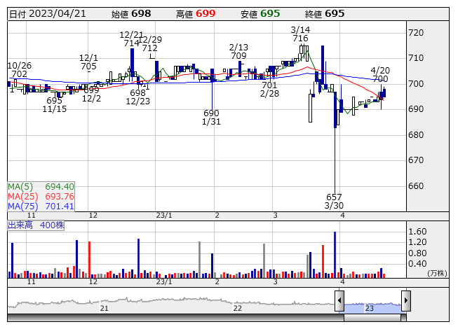 ヤマナカ <日足> 「株探」多機能チャートより■取引時間中の発表
