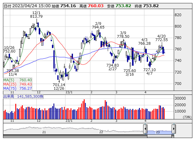 2023年04月24日15時17分 【市況】マザーズ先物:24日清算値=3ポイント高、747ポイント マザーズ指数 <日足> 「株探」多機能チャートより 24日15時15分、東証マザーズ指数先物期近2023年6月限は前週末清算値比3ポイント高の747ポイントで取引を終えた。出来高は3121枚だった。この日の東証マザーズ指数の現物終値753.82ポイントに対しては6.82ポイント安。 株探ニュース