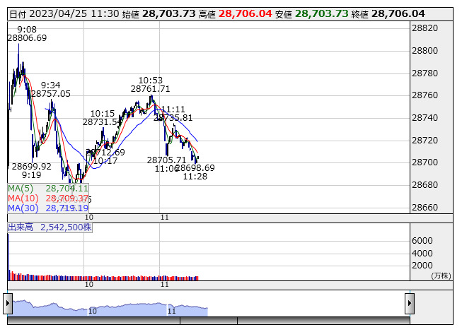 【市況】日経平均25日前引け=続伸、112円高の2万8706円