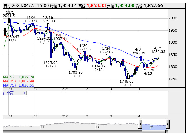 2023年04月25日15時17分 【市況】東証REIT指数先物:25日清算値=13ポイント高、1842ポイント REIT指数 <日足> 「株探」多機能チャートより 25日15時15分、東証REIT指数先物期近2023年6月限は前日清算値比13ポイント高の1842ポイントで取引を終えた。出来高は298枚だった。この日の東証REIT指数の現物終値1852.66ポイントに対しては10.66ポイント安。 株探ニュース