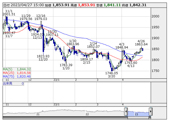 2023年04月27日15時17分 【市況】東証REIT指数先物:27日清算値=13ポイント安、1837ポイント REIT指数 <日足> 「株探」多機能チャートより 27日15時15分、東証REIT指数先物期近2023年6月限は前日清算値比13ポイント安の1837ポイントで取引を終えた。出来高は491枚だった。この日の東証REIT指数の現物終値1842.31ポイントに対しては5.31ポイント安。 株探ニュース