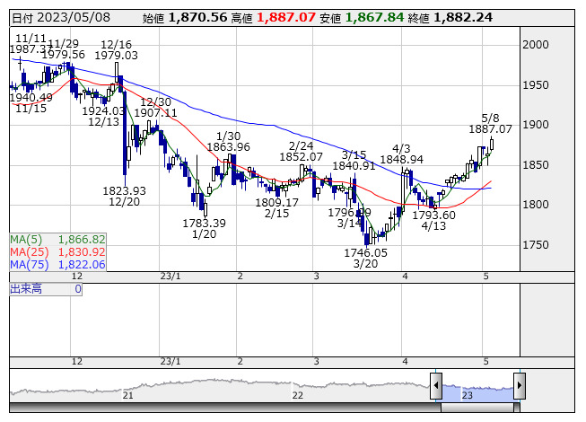 2023年05月09日08時51分 【市況】東証REIT指数先物:9日寄り付き=変わらず、1877ポイント REIT指数 <日足> 「株探」多機能チャートより 9日8時50分、東証REIT指数先物期近2023年6月限は前日清算値比変わらずの1877ポイントで寄り付いた。前日の東証REIT指数の現物終値1882.24ポイントに対しては5.24ポイント安。 株探ニュース