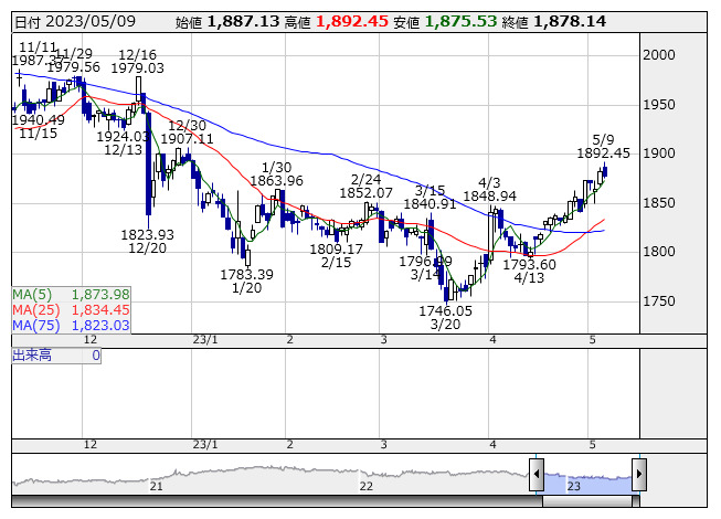 2023年05月10日08時47分 【市況】東証REIT指数先物:10日寄り付き=24.5ポイント高、1899ポイント REIT指数 <日足> 「株探」多機能チャートより 10日8時46分、東証REIT指数先物期近2023年6月限は前日清算値比24.5ポイント高の1899ポイントで寄り付いた。前日の東証REIT指数の現物終値1878.14ポイントに対しては20.86ポイント高。 株探ニュース