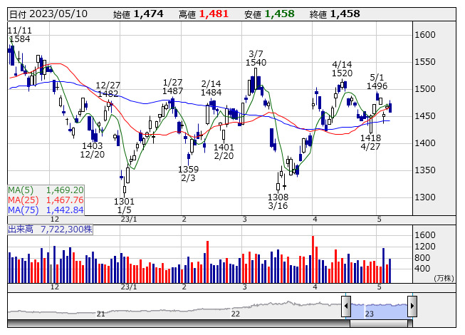 鉄鋼 +0.05 日本製鉄 <5401> 、JFE <5411> 、淀川鋼 <5451>
