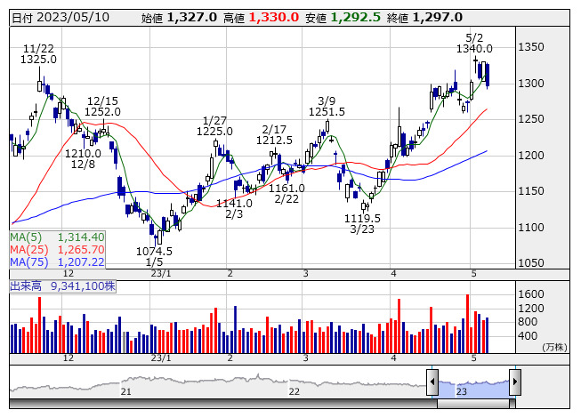 ロジスネクス <7105> 1,243 +81 ( +7.0%) 53,400 ( 6,642) 51,800 ( 6,438)