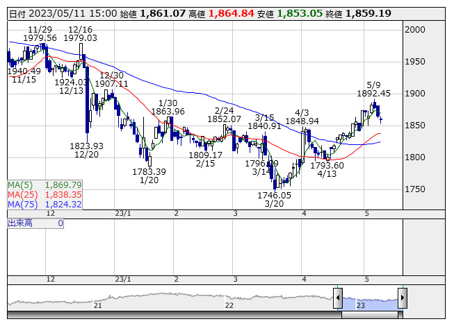 2023年05月11日15時17分 【市況】東証REIT指数先物:11日清算値=7.5ポイント安、1853.5ポイント REIT指数 <日足> 「株探」多機能チャートより 11日15時15分、東証REIT指数先物期近2023年6月限は前日清算値比7.5ポイント安の1853.5ポイントで取引を終えた。出来高は62枚だった。この日の東証REIT指数の現物終値1859.19ポイントに対しては5.69ポイント安。 株探ニュース