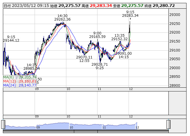 日経平均 <5分足> 売買代金 「株探」多機能チャートより個別ではiFreeETF NASDAQ100 レバレッジ <2869> 、上場インデックスファンド225 <1330> 、日経平均ブル2倍上場投信 <1579> 、iFreeETF 日経225(年4回決算型) <2624> 、NEXT FUNDS NASDAQ-100 <2845> など23銘柄が新高値。日経平均ベア2倍上場投信 <1360> 、楽天ETF-日経ダブルインバース指数連動型 <1459> 、WisdomTree 産業用金属 <1686> 、iFreeETF NASDAQ100 ダブルインバース <2870> 、NEXT 日経平均ダブルインバース・インデックス <1357> など12銘柄が新安値をつけている。