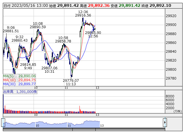 【市況】13時の日経平均は265円高の2万9891円、東エレクが67.61円押し上げ
