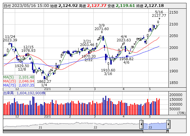 2127.18ポイント 16日TOPIX現物終値