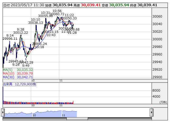【市況】日経平均17日前引け=5日続伸、196円高の3万39円