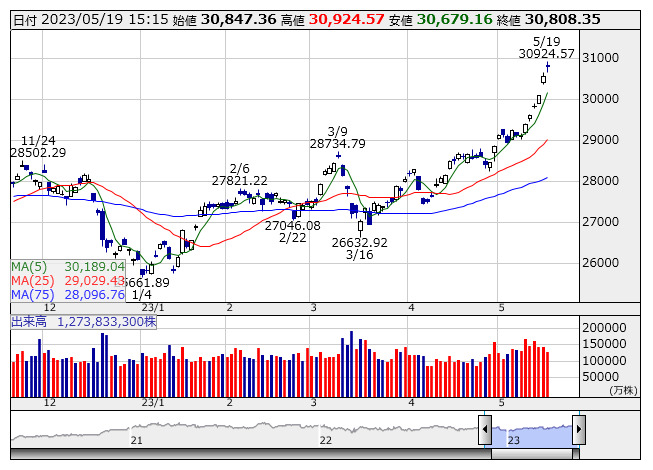 30808.35円 19日日経平均株価現物終値