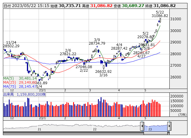 【市況】日経225先物テクニカルポイント(22日大引け)