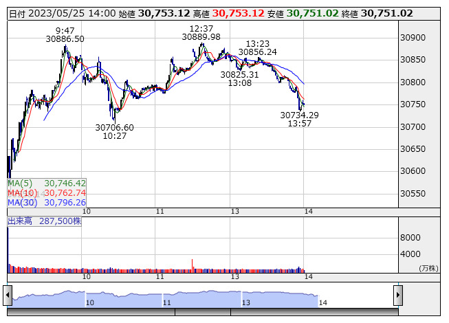 【市況】14時の日経平均は68円高の3万751円、アドテストが148.43円押し上げ