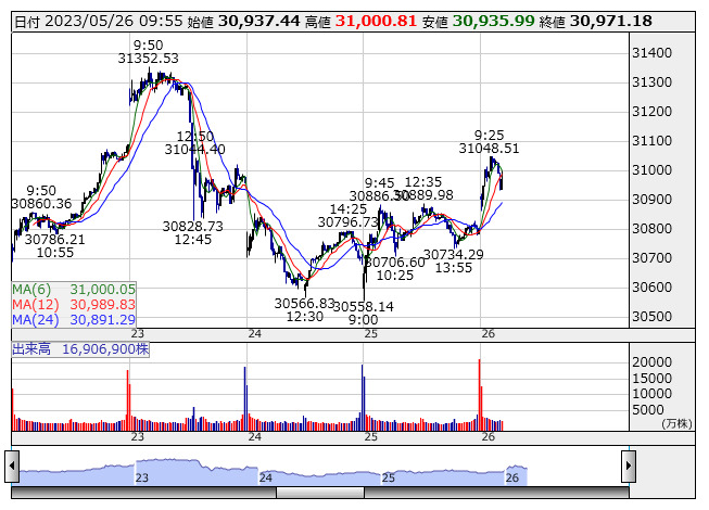 【市況】10時の日経平均は170円高の3万971円、東エレクが97.60円押し上げ