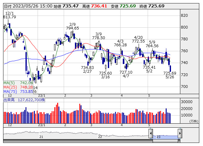 739.00ポイント 一目均衡表・先行スパン1(雲下限)