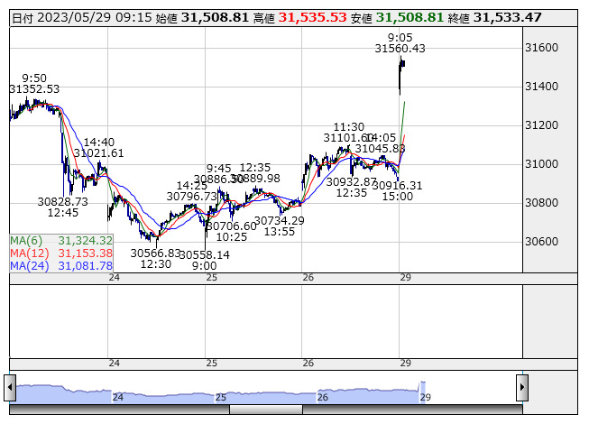 日経平均 <5分足> 売買代金 「株探」多機能チャートより個別では上場インデックスファンドTOPIX <1586> 、iシェアーズ・コア 日経225 ETF <1329> 、上場インデックス米国株式 <1547> 、上場日本高配当 <1698> 、iシェアーズ オートメーション&ロボット ETF <2522> など70銘柄が新高値。JPX日経400ベア2倍上場投信(ダブルインバース) <1469> 、iFreeETF NASDAQ100インバース <2842> 、iFreeETF NASDAQ100 ダブルインバース <2870> 、日経平均ベア上場投信 <1580> 、NEXT 日経平均インバース <1571> など13銘柄が新安値をつけている。
