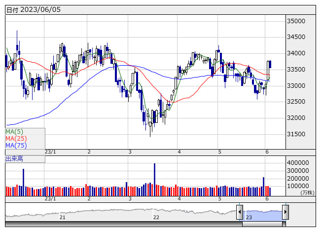 NYダウ 33562.86 ( -199.90 )